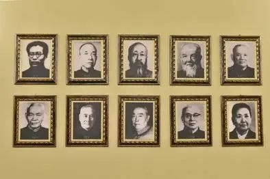 图为哈尔滨马迭尔宾馆二楼会议室悬挂的民主人士肖像,中共中央东北局代表曾在这里与沈钧儒、谭平山、章伯钧、蔡廷锴、王绍鏊、朱学范、高崇民等人举行会谈,商议新政协的逐项事宜。