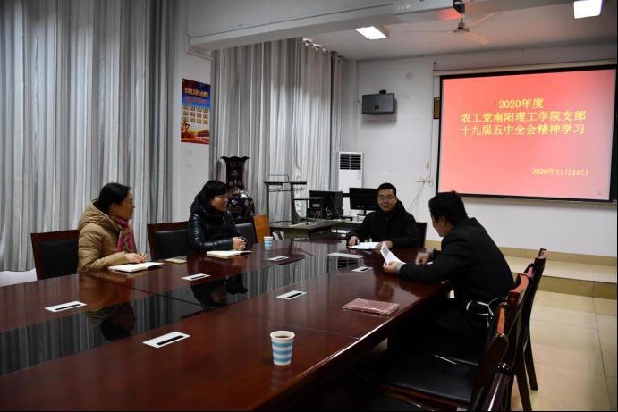 2020年11月22日,农工党南阳理工学院支部组织召开专题学习座谈会,深入学习领会中国共产党第十九届中央委员会第五次全体会议精神,支部全体党员参会。