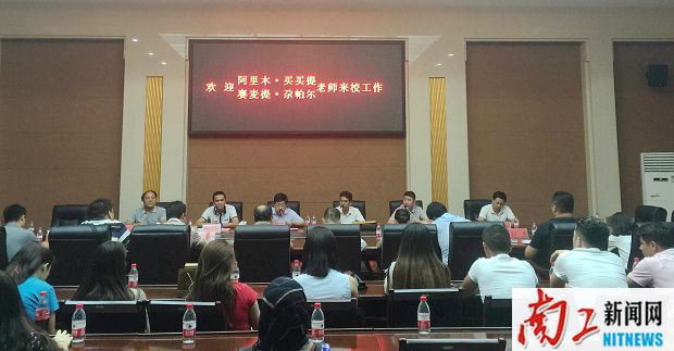 本网讯 (特约记者/ 胡玲)从9月10日起,新疆内派服务管理教师阿里木·买买提和赛麦提·尕帕尔将正式成为南阳理工学院一员,担起学校助手、新疆籍少数民族学生良师益友的重任,为他们提供好服务。当日,学校在会议中心为二位教师举行欢迎会,副校长肖泽昌出席。